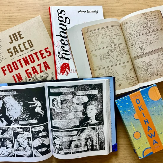 This month, we asked our editors and contributors, among them several comics artists, to share new graphic novels and comics they’re reading this spring, running the gamut from Ai Weiwei’s memoir woven together by paper-thin line drawings and a poignant generational story by Tessa Hulls to an unearthed wealth of cartoons on lined paper by an artist whose work wasn’t discovered until after his death in 1979. We also include an older book by journalist Joe Sacco, whose message still resonates painfully with the current bombardment of Gaza. —Lakshmi Rivera Amin