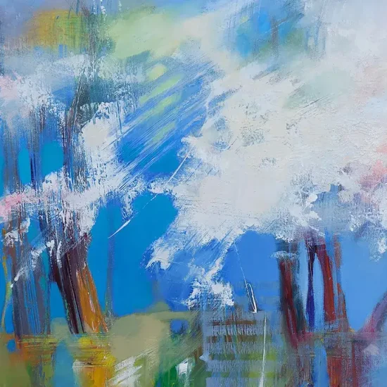 In the realm of art, Aiste Jurgilaite is best described as a poet of the canvas, employing a style she characterizes as abstract poetic expressionism. This unique approach allows her to oscillate between the utterly abstract and the subtly recognizable, creating a visual language that speaks to the intuitive and the subconscious. Her artworks often feature a dynamic interplay of colors and forms, incorporating elements that range from ethereal space themes to grounded architectural motifs. Each piece serves as a conduit for conveying complex feelings, inner experiences, and philosophical musings, inviting viewers to explore the mysterious essence of life and the universe.
