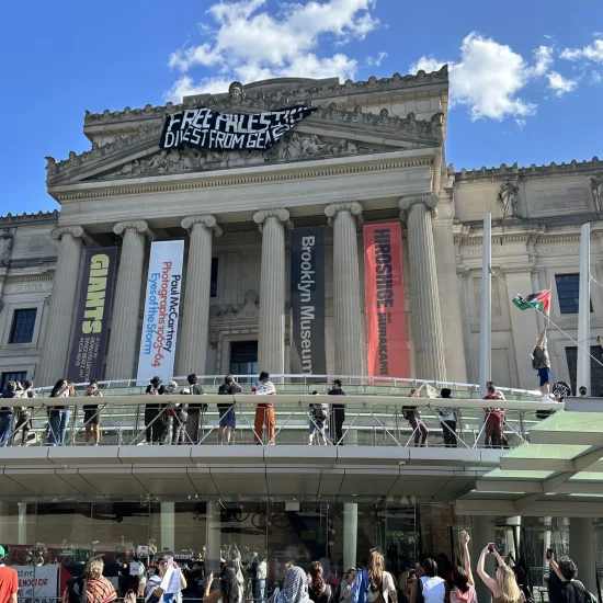 Today’s action follows several protests for Gaza that have taken place at the Brooklyn Museum since last October, as activists and its own staff have continued to call out the institution’s silence on Israel’s escalating hostilities against Palestinians and its aggressive treatment of pro-Palestine demonstrators.