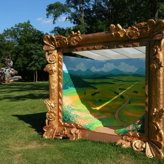 Michael Scoggins and Alex Gingrow were two of the artists who opened their shared studio for visitors, and they even invited a number of artists to exhibit alongside them. Scoggins explained to me that the gathering was a great opportunity for his neighbors in Kerhonkson to discover what he’s been up to and learn about the artist community in the region. Kerhonkson, like many of the towns here, is slowly filling up with artists, who find the proximity to New York — about a one-and-a-half to three-hour drive, depending on the location in the Hudson Valley — appealing, as well as the energy emerging from the new crop of art venues that are creating an artistic density in the region.