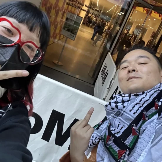 “Either officially or unofficially, the MoMA seems to have either banned the keffiyeh or Palestinian flags, which are symbols of a people who are actively facing genocide in this moment,” Park told Hyperallergic, adding that their interaction with security was “basically a statement from the museum that they don’t think Palestinians should exist, at least within the museum.”