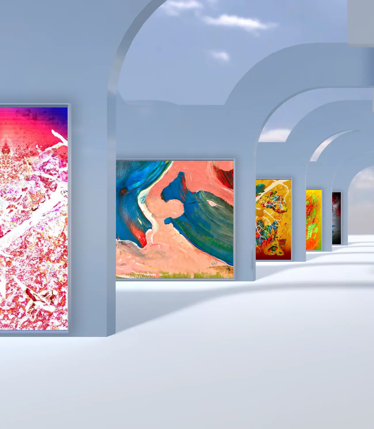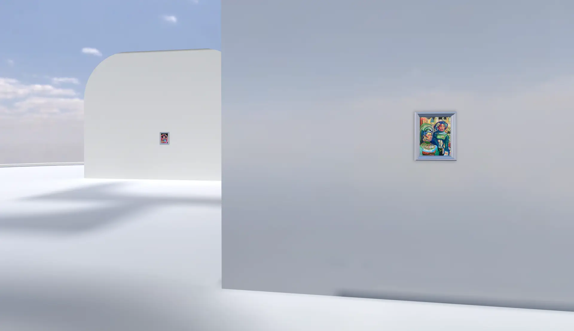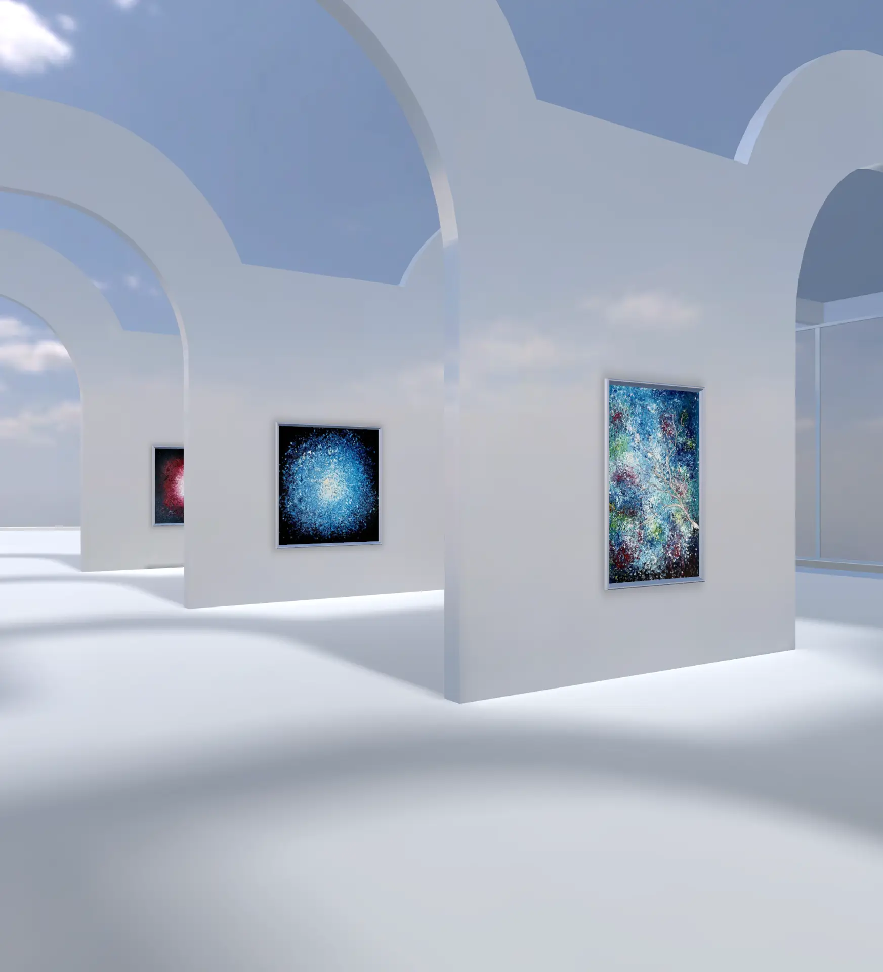Showcase your art in a cutting-edge environment with "The LA Catwalk." This modern glass gallery, suspended in the sky, offers an open, airy space with stunning sky views and water features on either side. Featuring innovative glass structures and walkways, this template provides a sleek and futuristic setting for up to 11 artworks, perfect for a high-fashion, contemporary exhibition.<span data-metadata="" style="font-size: 22px;">